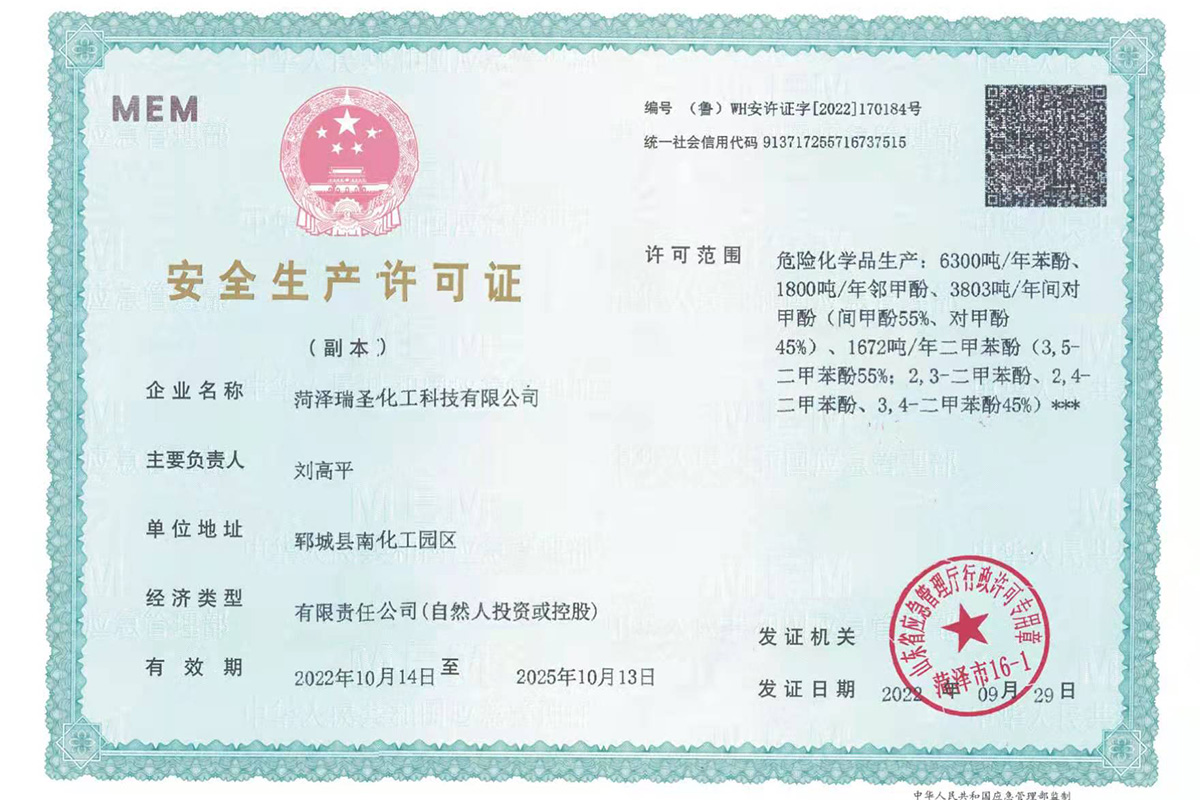 菏澤瑞圣化工科技有限公司是國內酚類產品的生產企業。公司現有年加工粗酚20000萬噸的生產裝置及能力,可生產苯酚、鄰甲酚、間對甲酚、二甲酚等產品。產品廣泛應用于合成樹脂、香料、染料、絕緣材料、阻燃劑、農藥、醫藥、中間體等精細化工領域。本公司以誠為本,信譽保證,靠過硬的產品質量和完善的服務贏得了國內外廣大用戶的贊譽。產品暢銷國內二十多個省市地區,并地打入了國際市場,產品遠銷意大利、巴西、印度、韓國、日本、臺灣等國家和地區。